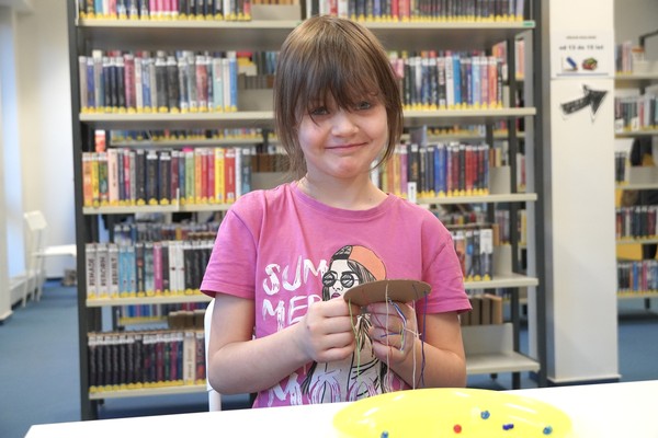 „Společně jsme se pustili do vyrábění náramku z bavlnek. Kdo chtěl, mohl si přidat i perličku. S dopomocí to všichni zvládli. Jde o velmi jednoduchou techniku, jen je trochu časově náročná,“ uvedla knihovnice Nikola Klimková a prozradila postup: „Připravili jsme si pevnou papírovou šablonu ve tvaru kolečka, po obvodu ji na osmi místech nastřihli směrem ke středu a uprostřed udělali otvor, kterým jsme protáhli svazek sedmi bavlnek. Tyto bavlnky jsme rozmístili každou do jednoho nastřiženého místa. Jedno místo zůstalo volné, abychom mohli opakovaným přesouváním třetího provázku do volného místa náramek postupně uplést.“