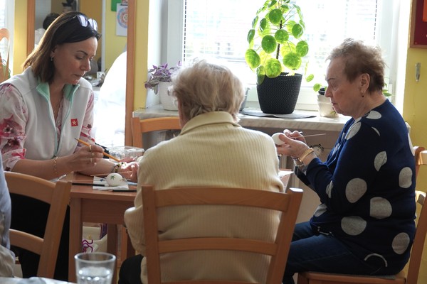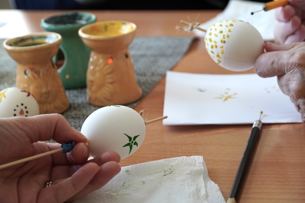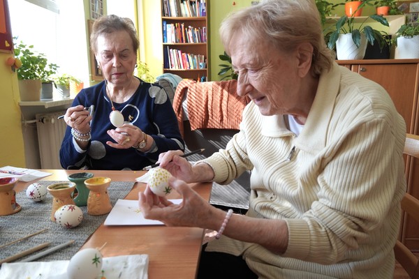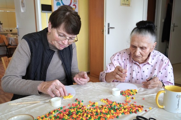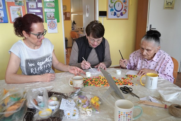 03.04.2026 - Klienti Denního centra služeb a Odlehčovací služby Sociálních služeb Karviná se zapojili do velikonočního tvoření, které všem zpestřilo běžný program. Během setkání vznikaly například dekorace z krepového papíru na vystřihnutých šablonách vajíček, zdobení vyfouknutých vajíček barevným teplým voskem nebo jarní věneček. Klienti si zároveň vyzkoušeli i pečení zajíčků místo tradičních beránků. Po ruce byly aktivizační pracovnice, které jednotlivé činnosti vedly a přizpůsobovaly možnostem klientů. Při tvoření panovala klidná a soustředěná atmosféra. Klienti se zapojovali do rozhovorů o velikonočních tradicích, zvycích v domácnostech i plánech na svátky. Vzpomínky doprovázely slovenské lidové písně, které některým připomněly zážitky z mládí.