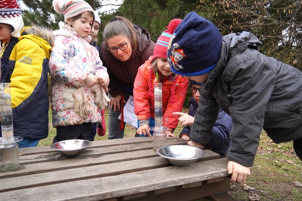 Jednou z pravidelných aktivit je kroužek Přírodníček, který se koná přímo na zahradě mateřské školy. Děti se při něm seznamují s přírodními materiály, pozorují rostliny i drobné živočichy a učí se vnímat proměny přírody v průběhu roku. Aktivity jsou vedeny hravou formou a přirozeně podporují dětskou zvídavost, samostatnost i fantazii. „Tentokrát jsme s dětmi hledali vodu ve všech koutech zahrady, sbírali ji pipetou na další pokusy, zkoušeli filtraci pomocí jednoduché filtrační sestavy, pozorovali změny barvy a společně jsme vše zhodnotili. Pustili jsme se také do tvořivých aktivit z bláta a hledali jsme odpovědi na otázku, jak se hlína proměnila v bláto,“ popsala učitelka Marcela Navrátilová, která ekologické aktivity ve školce od samého počátku zaštiťuje, dokáže do nich poutavě a zcela nenásilně vtáhnout jak děti, tak i jejich rodiče a provozní zaměstnance.