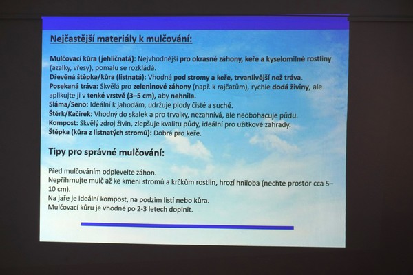 „Cílem bylo ukázat, že i drobná opatření v domácích zahradách mohou mít ve výsledku významný dopad. Lidé si odnesli konkrétní příklady, které mohou sami aplikovat v praxi,“ doplnila koordinátorka aktivit projektu Petra Pomianková.