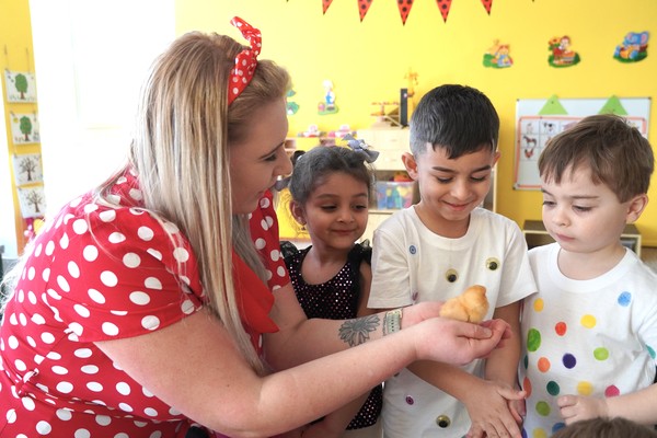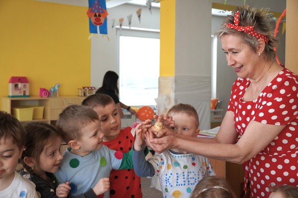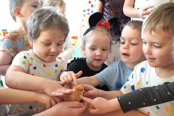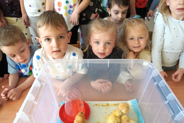 Do školky byla přivezena speciální líheň s vajíčky, ve kterých se vyvíjela kuřata. Děti tak mohly sledovat celý proces – od prvních náznaků života až po samotné líhnutí. Už několik dní po zahájení bylo patrné, že se uvnitř vajíček něco děje a děti s napětím očekávaly okamžik, kdy se kuřata začnou klubat.