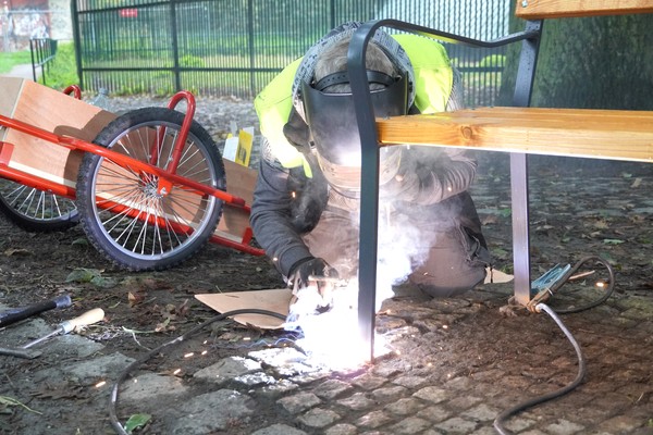 Technické služby Karviná pracují na obnově posezení, pomáhají i žáci na praxi