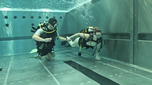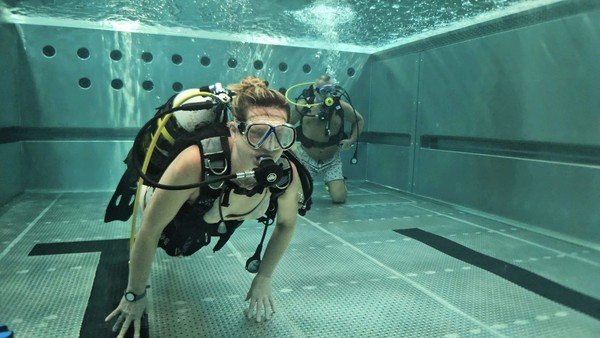 „V této fázi jde hlavně o to vyzkoušet si samotný pocit pod vodou a dýchání s přístrojem. Nezatěžujeme účastníky složitými cvičeními, důležité je, aby se sžili s prostředím a zjistili, jestli jsou schopni se pod vodou uvolnit a fungovat. Pokud to zvládají, ukážeme jim základní věci, jako práci s maskou nebo výstrojí,“ vysvětlil instruktor potápění Petr Hořák. První okamžiky pod vodou často doprovází nejistota nebo obavy, ty ale podle něj rychle mizí. „Na začátku může být trošku stres a adrenalin, ale jakmile se lidé uklidní a začnou vnímat dýchání, všechno se změní. Na konci ponoru už se pohybují samostatně a zvládají základní orientaci,“ doplnil kolega instruktor Tomáš Zwettler.