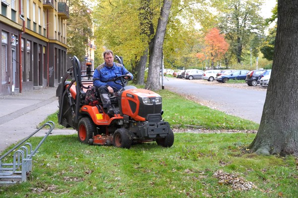 22.10.2025 - Podzim se v Karviné už naplno hlásí o slovo — stromy se barví do všech odstínů oranžové, červené a hnědé, ale s krásou přichází i každoroční práce. Jakmile začne listí padat, vyrážejí do ulic zaměstnanci Technických služeb Karviná, aby město zůstalo čisté a bezpečné. Na úklid spadaného listí používají sekačky vybavené sběrnými kapsami. Od jara sečou trávu, na podzim navíc sbírají i listí. Tam, kam se stroje nedostanou – třeba mezi zaparkovaná auta, do koutů parků nebo kolem obrubníků – nastupují pracovníci s foukači, kteří listí rozfoukávají do hromad, odkud ho lze snadno posbírat.