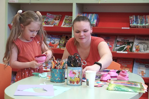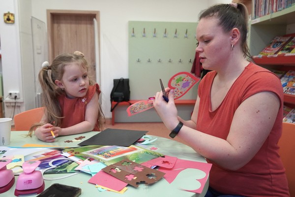Na tvoření přišla Vendula Brzuchanská se svou dcerou: „Na tvoření jsme přišly poprvé. Nabídky knihovny sleduji už delší dobu, ale s dvěma dětmi je někdy složité si najít volný čas. Dcera ráda tvoří a doma už jsme vyčerpaly všechny nápady, tak mě potěšilo, že si může něco vyrobit tady. Valentýnský dárek vytvořila pro tatínka. Osobně mě láká i tvoření pro dospělé.“ Dodala také, že knihovnu pravidelně navštěvuje a využívá půjčování nejen klasických knih, ale doma s dětmi si získaly oblibu interaktivní Albi tituly, které si nejprve vyzkouší a pak podle zájmu i zakoupí.